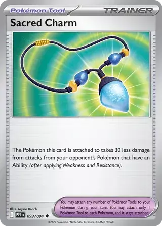 ¡Entrenador Pokémon! Si buscas fortalecer tu mazo o agregar una pieza especial a tu colección, en Pokestop.cl: Tu tienda online de cartas Pokémon encontrarás la carta Sacred Charm (093/094). ¡Consíguela antes de que se agote!